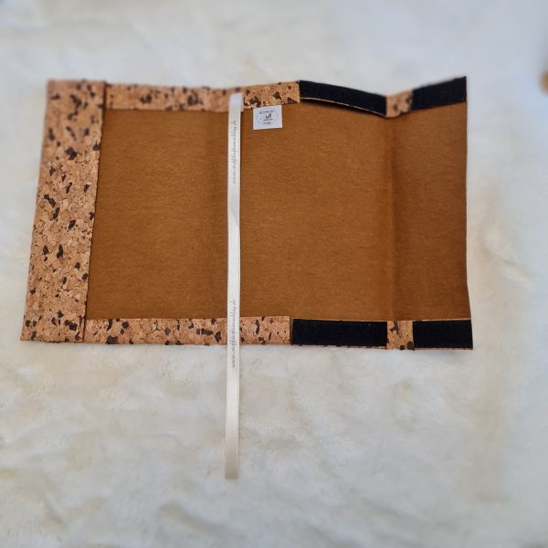 Der Umschlag ist Baumwollstoff, der mit Kork dünn beschichtet ist.